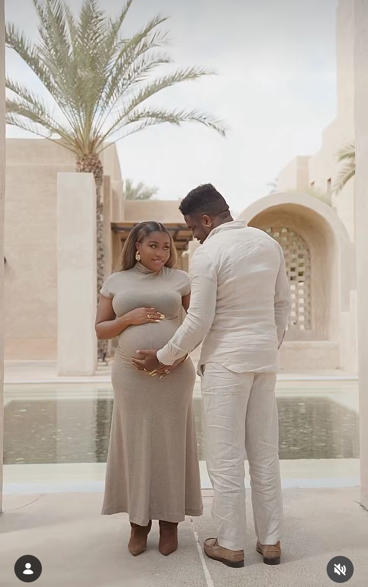 The couple shared the joyous news on Instagram, posting elegant maternity photographs that highlight Veekee’s growing baby bump. In her post, she wrote: