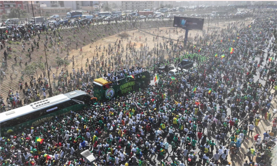 The Lions of Teranga were greeted with thunderous cheers, chants, and a sea of waving national flags as they made their way through the city in open-top buses. Fans of all ages danced, sang, and took photos with the players, creating a vibrant and festive atmosphere.